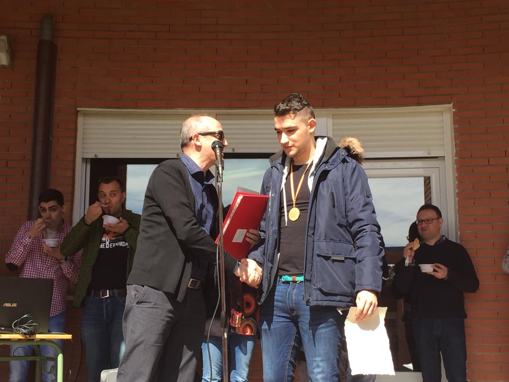 D. Jesús Martín Chamorro, primer premio de traducción FONS SALVTIS, junto con los ganadores de los accésit, Dª Begoña Galiano Alonso y D. Mario Cabrera Barajas, acompañados por su profesor, D. José Fernando Pablos Navazo. FOTO: L Martín