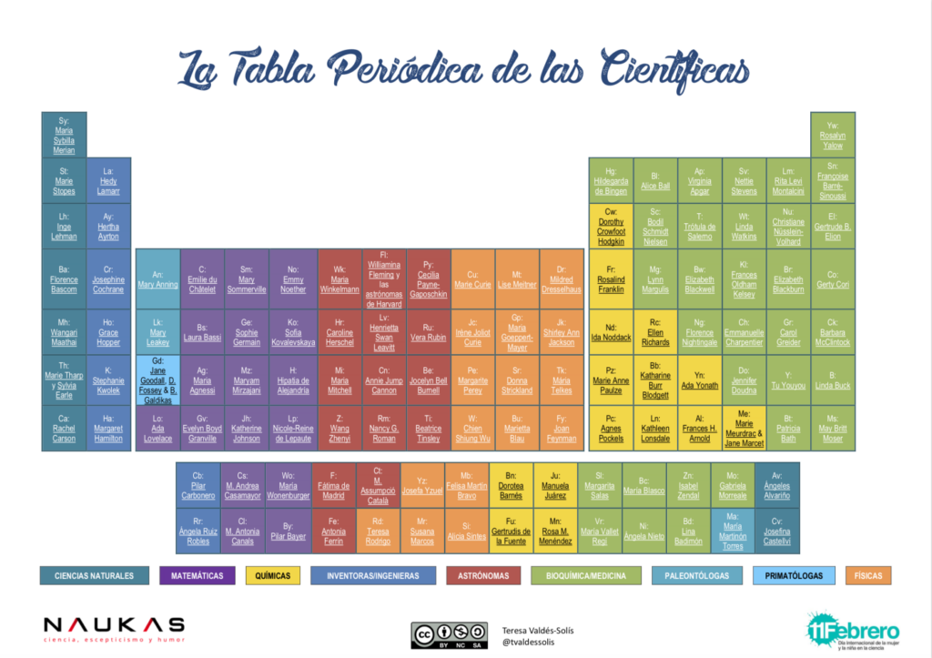 A finales de 2018 dio a conocer su Tabla Periódica de las Científicas, que recopila un gran número de científicas de diferentes áreas del conocimiento (Ciencias Naturales, Paleontología, Matemáticas, Física, Química…).