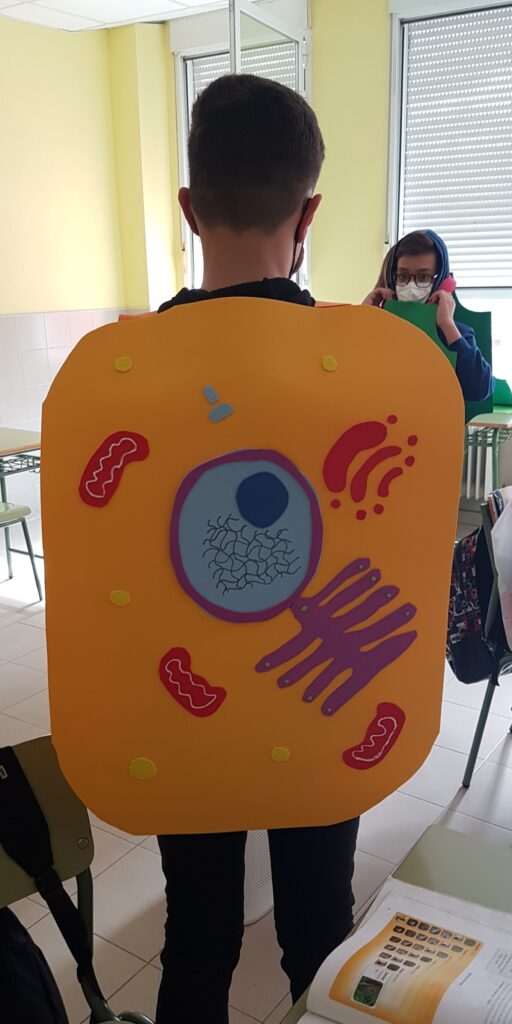 Since we had been working on the Unit on the structure and composition of living beings, our teacher suggested the idea of making the costume as an activity that would allow us to recognise and learn the parts of cells, their functions, and the differences between animal and plant cells.