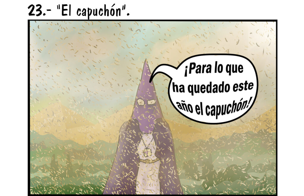 El capuchón por Autor · 28 marzo, 2021 LUCÍA SÁNCHEZ DE LA TORRE. 2.º Bachillerato HCS Canceladas las procesiones de esta atípica Semana Santa, servirá la indumentaria del cofrade a los africanos que están sufriendo la plaga de langostas.Comparte esto:Haz clic para enviar por correo electrónico a un amigo (Se abre en una ventana nueva)Haz clic para compartir en WhatsApp (Se abre en una ventana nueva)Haz clic para compartir en Telegram (Se abre en una ventana nueva)Haz clic para compartir en Twitter (Se abre en una ventana nueva)Haz clic para compartir en Facebook (Se abre en una ventana nueva)Haz clic para compartir en LinkedIn (Se abre en una ventana nueva)Haz clic para imprimir (Se abre en una ventana nueva)