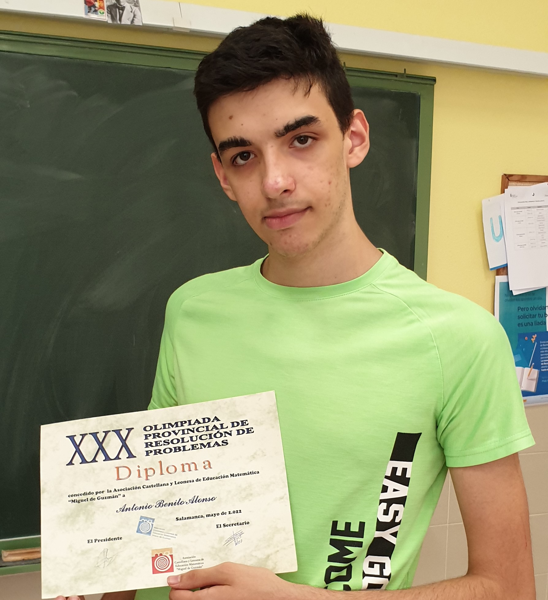 Antonio participó recientemente en la XXX Olimpiada Provincial de Resolución de Problemas, logrando ser premiado como uno de los mejores de la prueba, y a punto estuvo de ser seleccionado para representar a nuestra provincia en la fase regional. Siempre ha mostrado un gran entusiasmo por las matemáticas, como también demuestra su pasada participación en el Proyecto EsTalMat, que tiene por objeto el estímulo del talento matemático.