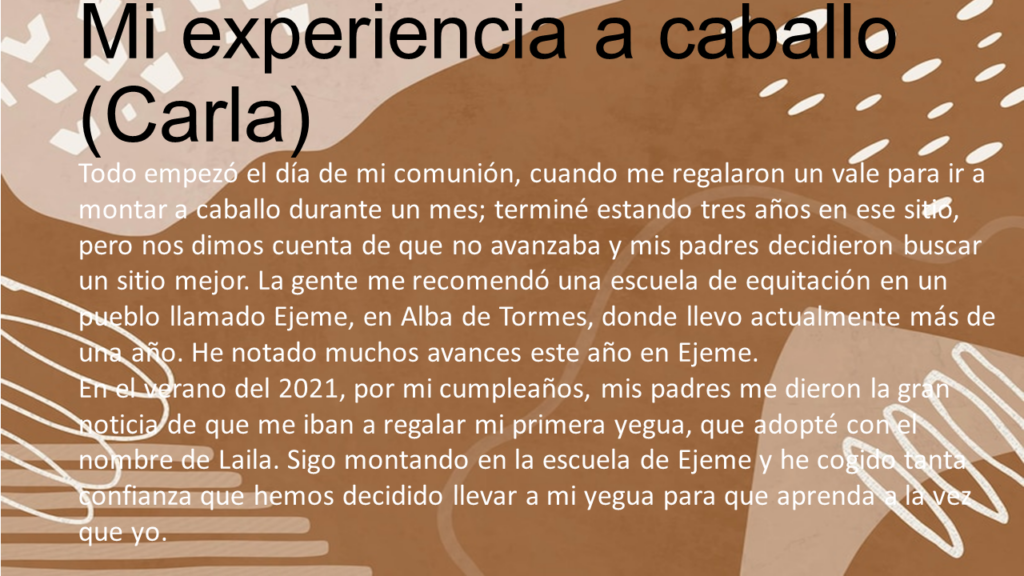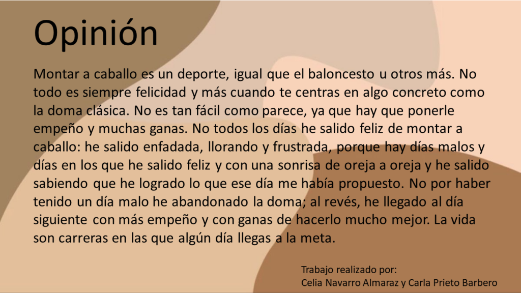 Doma clásica por Autor · 14 noviembre, 2022 CELIA NAVARRO ALMARAZ y CARLA PRIETO BARBERO, alumnas de 2.º ESO AComparte esto:Haz clic para enviar por correo electrónico a un amigo (Se abre en una ventana nueva)Haz clic para compartir en WhatsApp (Se abre en una ventana nueva)Haz clic para compartir en Telegram (Se abre en una ventana nueva)Haz clic para compartir en Twitter (Se abre en una ventana nueva)Haz clic para compartir en Facebook (Se abre en una ventana nueva)Haz clic para compartir en LinkedIn (Se abre en una ventana nueva)Haz clic para imprimir (Se abre en una ventana nueva)