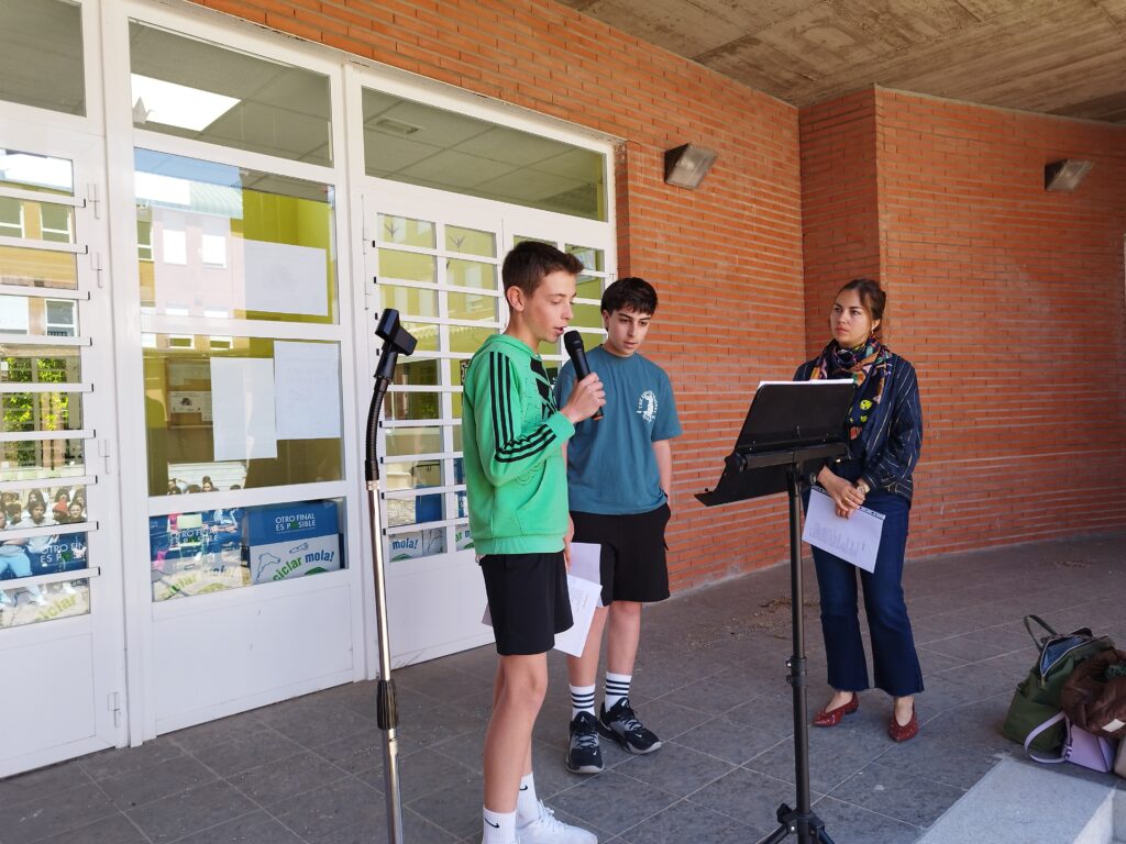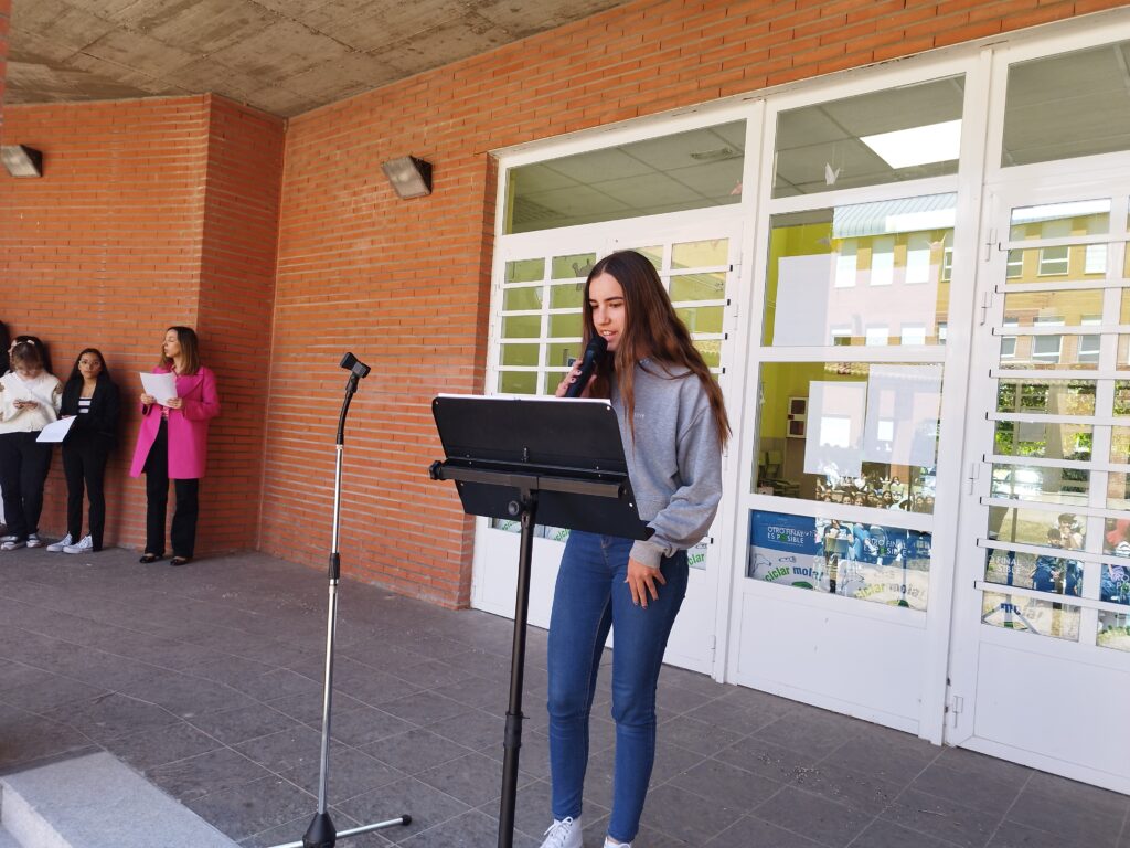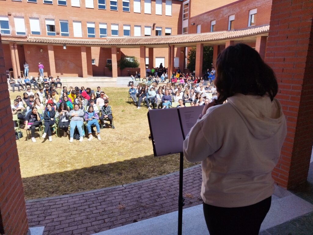 El 24 de abril, para conmemorar el Día del Libro, celebramos un recital de poesía, que con el nombre “Más que palabras” recupera una tradición anterior a la pandemia. Esta lectura poética, en la que participaron docentes y alumnos de todos los cursos, se llevó a cabo en el patio redondo de nuestro centro.