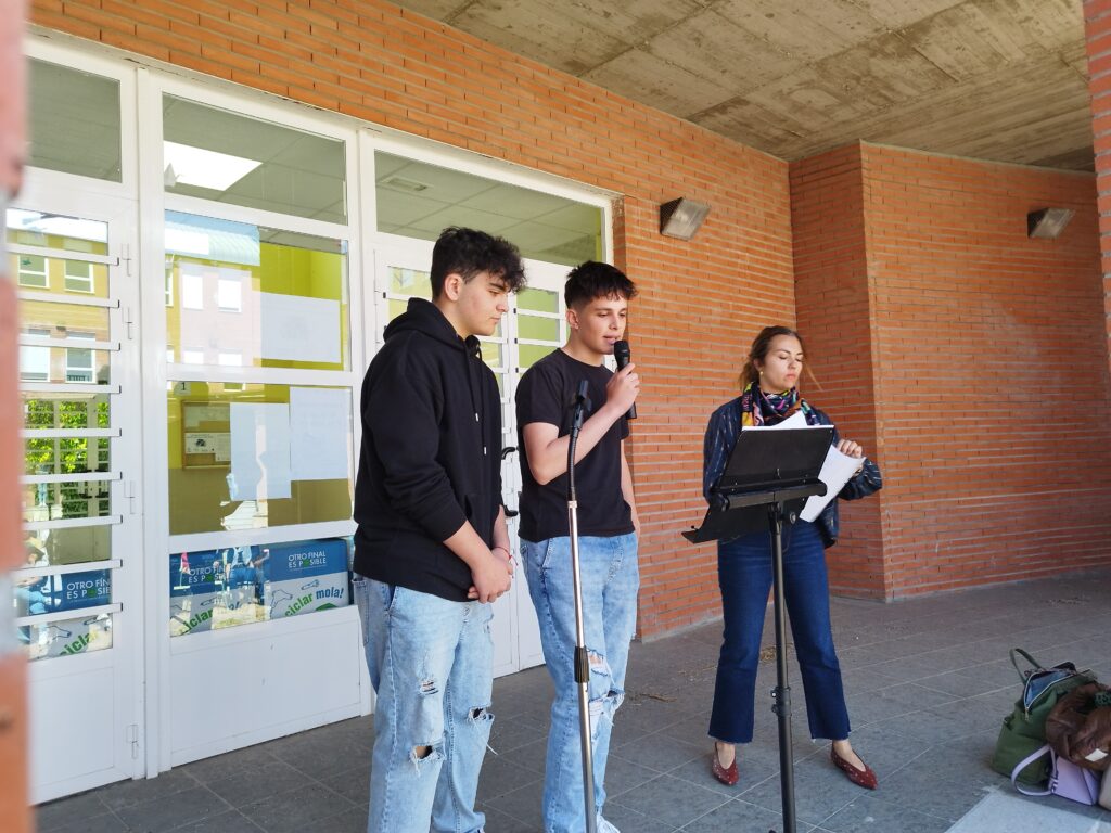 Mara García, Juan Fincias, y Alejandra Martín de 2.º ESO recitaron La muralla de Nicolás Guillén