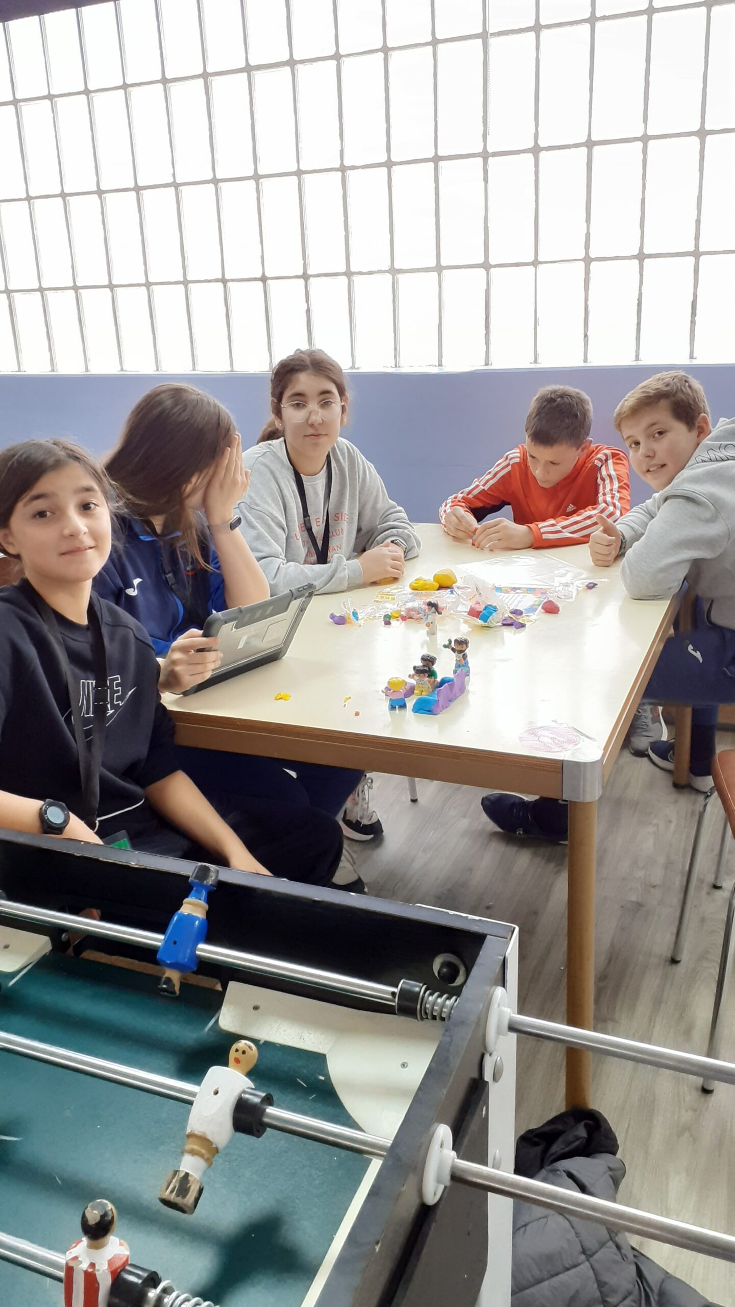 Picture 2. In this picture, we are making a stopmotion with clay and legos. This was a great activity.Picture 3. In this picture we are in a calisthenics park. In this activity we make calisthenic activity in groups, one group designs one activity and the other groups do it. Picture 4. In this workshop we are programming a robot. We are programming the robot with a tablet. Later we were racing, the other team was very competitive.Picture 5. In this picture we were getting ready to go to «La Ruta del Duero´´ with bikes. Some people went walking with a blind boy, his name is Sergio.Picture 6. This is the playground of CRIE. In this playground we played football and different games. We had a snack in the morning and in the afternoon. In the playground there was a door that they opened in the afternoon. Inside there were games like table tennis, some books, crayons to paint stickers, board games and more things to play.