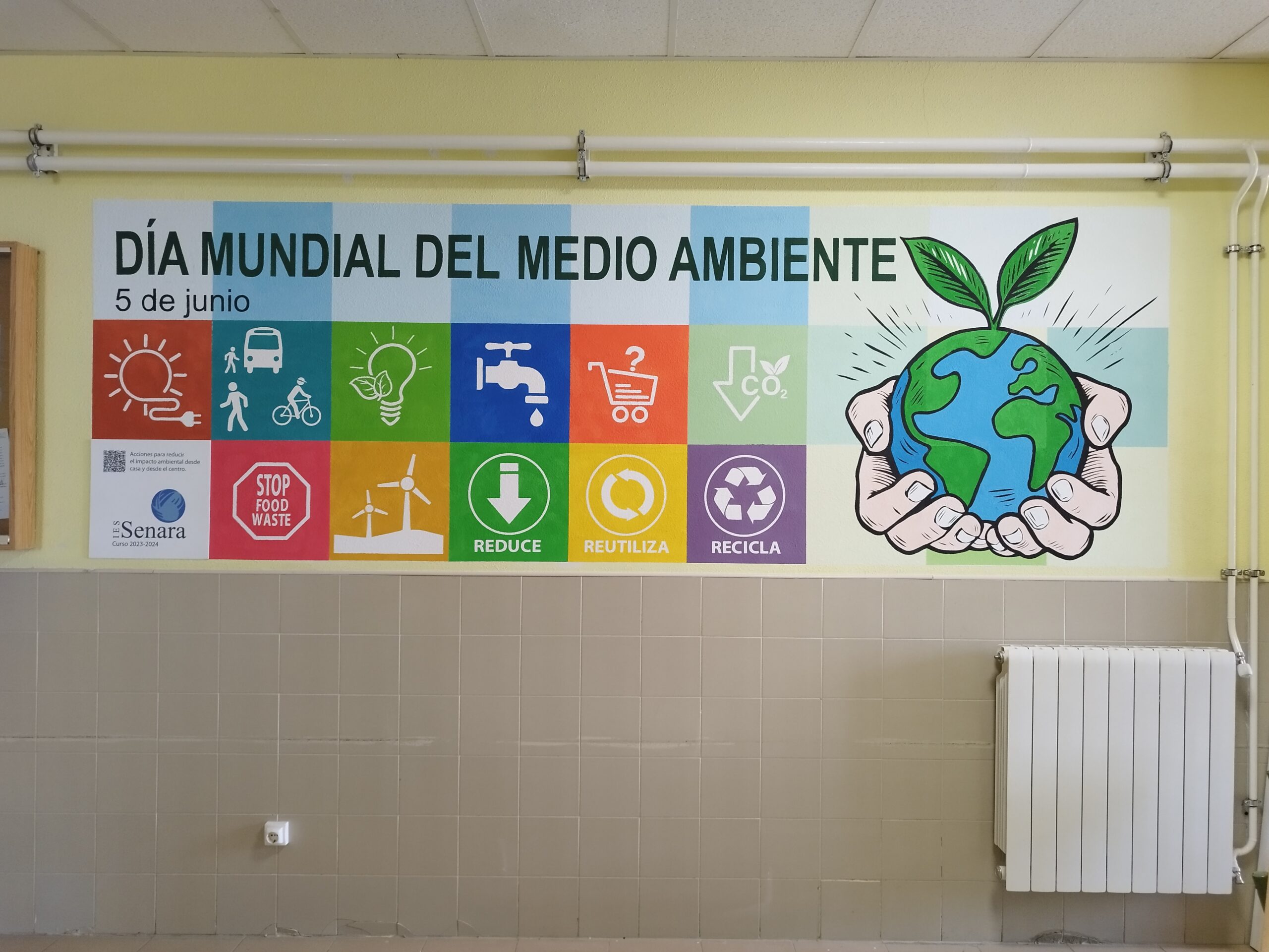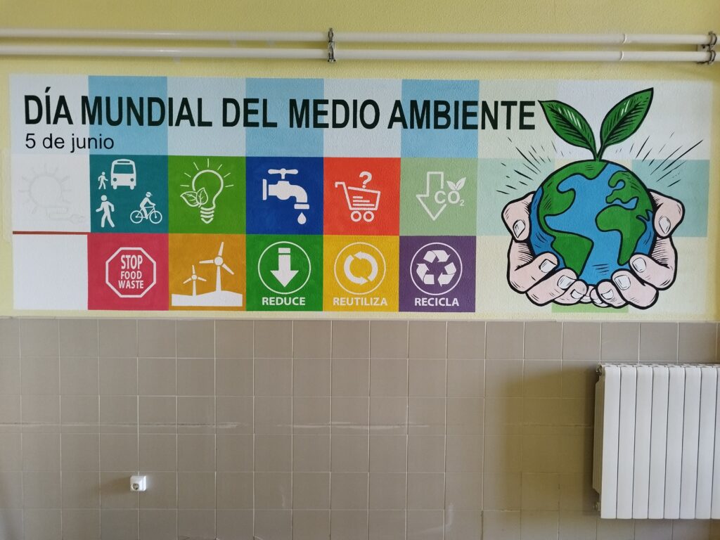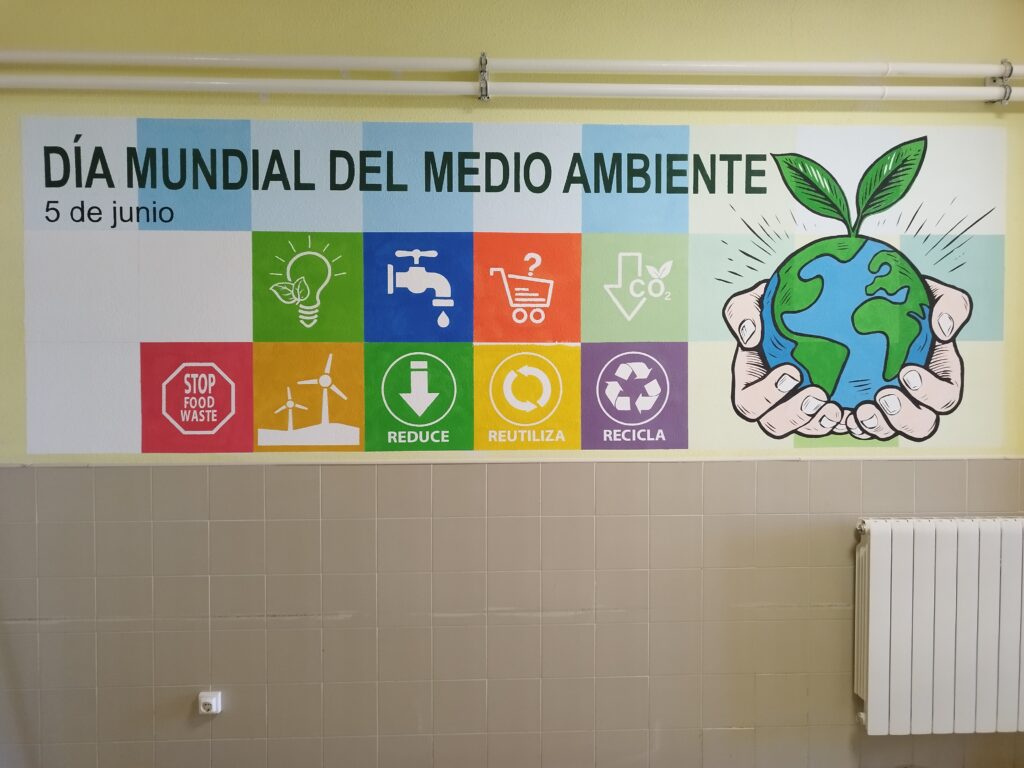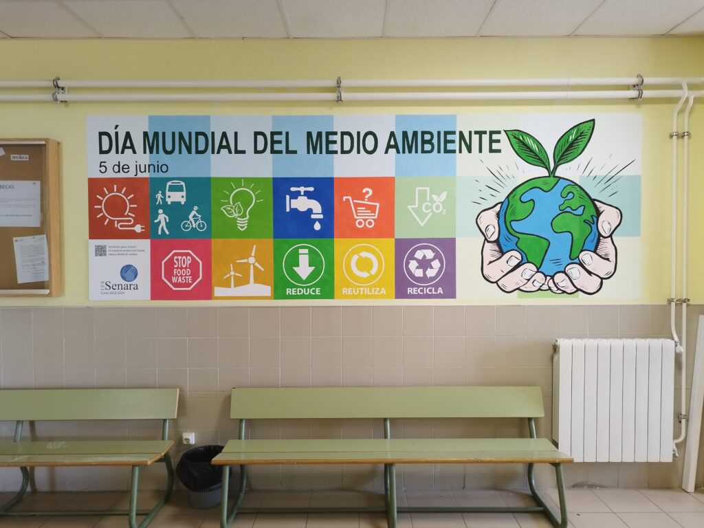 El día 5 de junio se celebra el Día Mundial del Medio Ambiente. Por eso, en el IES Senara hemos querido celebrar este día tan importante, pintando un mural conmemorativo en las paredes del centro.