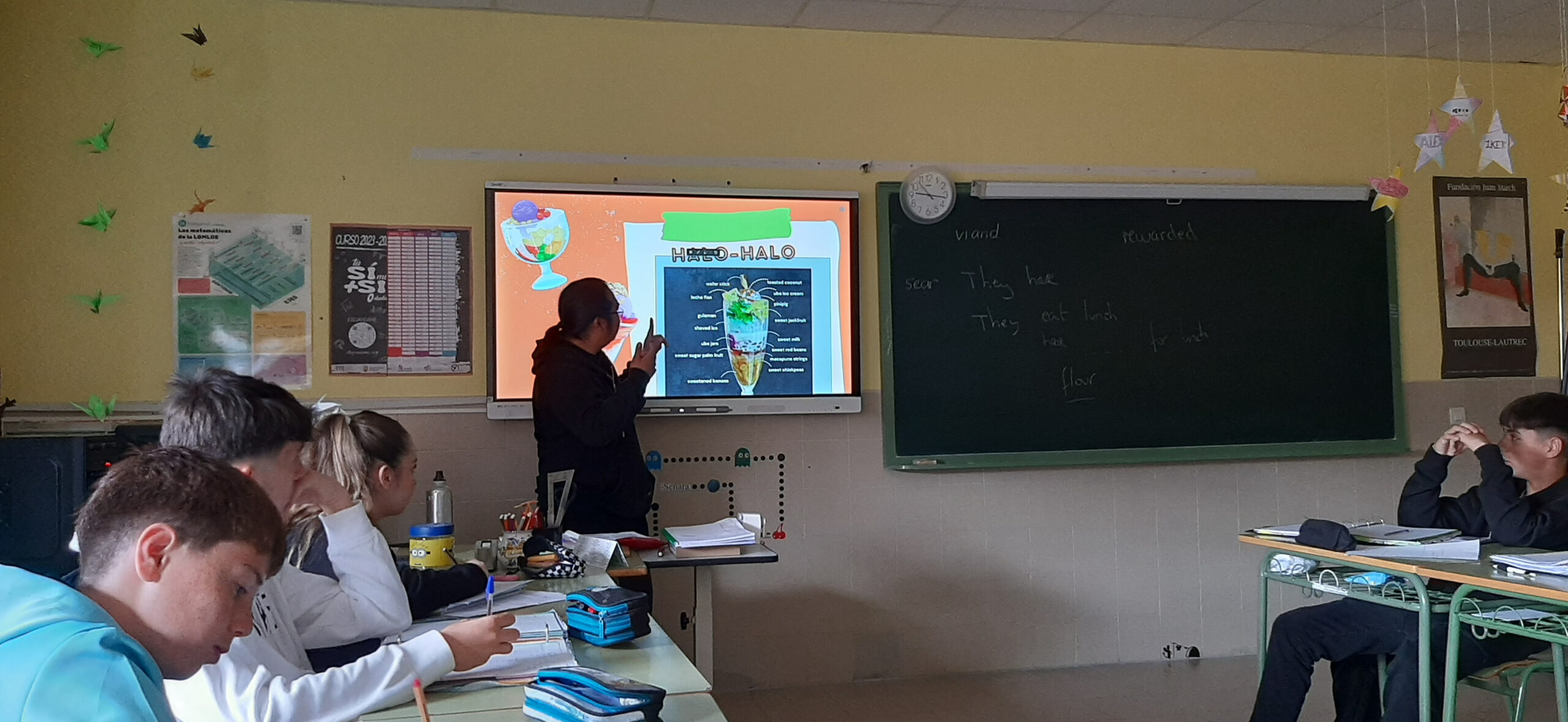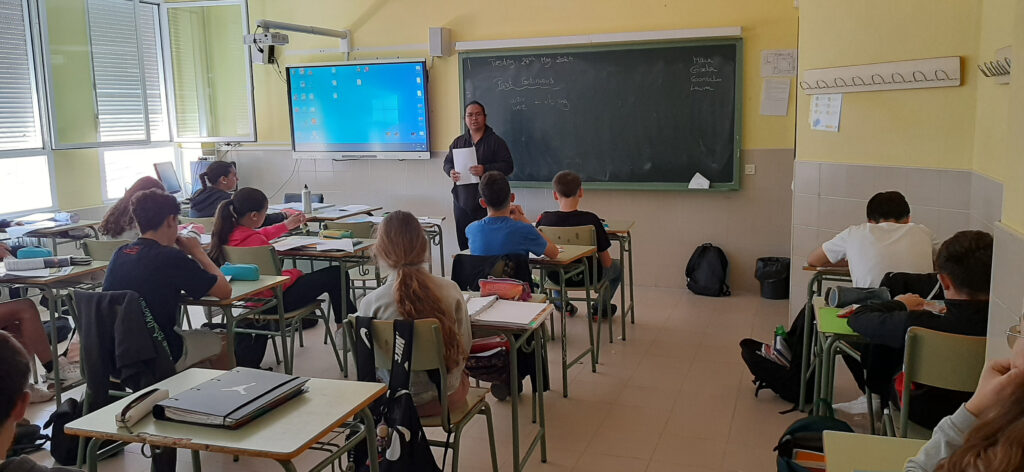 Ni que decir tiene que, la colaboración dentro de los departamentos de Inglés y de Sección Bilingüe fue excelente. Los profesores de ambos departamentos me brindaron apoyo y orientación constante, lo que me permitió integrarme fácilmente en el centro y adaptar mis actividades a las necesidades específicas del alumnado. Por ejemplo, con los alumnos de 4º ESO pudimos hacer un proyecto interdisciplinar de Geografía e Historia e Inglés. Los alumnos tuvieron que entrevistar a personas mayores para un proyecto de historia oral sobre la interacción social durante los años cincuenta y sesenta. Les ayudé a elaborar las preguntas de la entrevista y a redactar los guiones porque tenían que producir un podcast para Geografía e Historia y un resumen para Inglés. Esto fue posible gracias a las reuniones periódicas que me ayudaron a alinear mis objetivos con el currículo y a desarrollar estrategias efectivas.