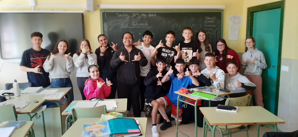 No obstante, mi tiempo en IES Senara ha sido realmente productivo. Tuve la oportunidad de desarrollar una variedad de actividades en el aula diseñadas para mejorar la competencia oral del alumnado y ampliar su conocimiento de otras culturas, en especial la cultura filipina. Entre estas actividades, que incluían juegos interactivos (JeopardyLabs, Kahoot, Blooket), debates y elaboración de mapas conceptuales, me gustaría destacar que pude enseñar una danza folclórica filipina llamada «tinikling» en el contexto de una unidad de Educación Física sobre condición física y deportes alternativos. Incluso tuve la oportunidad de cocinar y compartir la comida filipina.