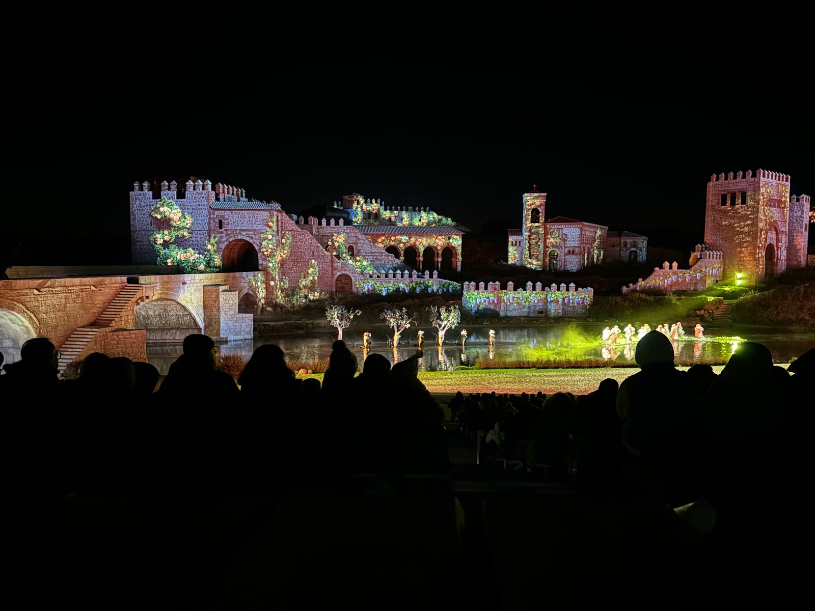 Rápidamente, y sin tiempo para digerir la maravilla que habíamos visto, nos dirigimos a ver el segundo espectáculo: El misterio de Sorbaces. La historia de este espectáculo comienza con una boda secreta y prohibida que se celebró en el año 589 entre una joven romana y un príncipe godo en presencia de la Santa Reliquia, que cambiaría el rumbo de la historia, siendo un misterio durante siglos. Por aquellos tiempos intentaban coexistir dos pueblos: los romanos y los visigodos, por lo que las disputas por el poder y a religión eran continuas, ya que ambos bandos siempre querían ganar poder y territorio. Esta historia tiene un final sin tragedia ya que la reliquia hizo el milagro y los cielos se manifestaron trayendo consigo un final feliz.