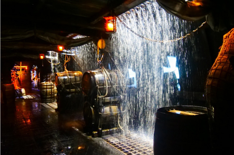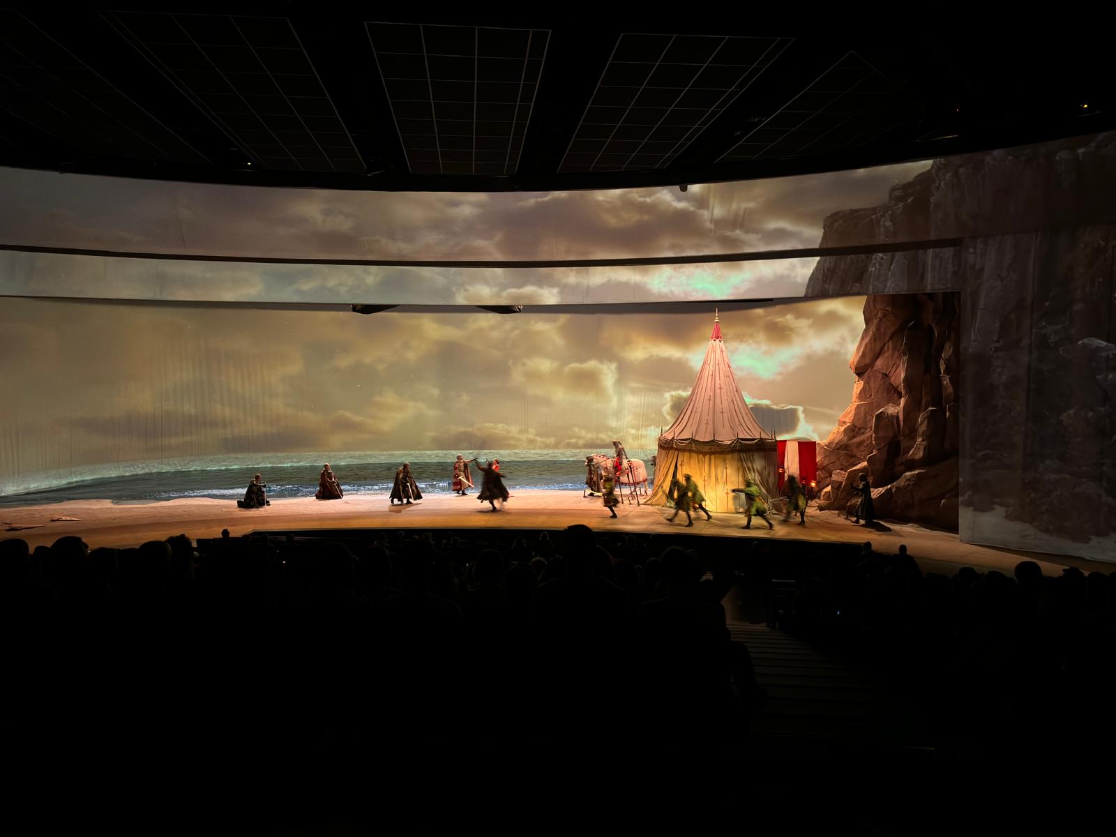 El siguiente espectáculo fue el Allende la Mar Océana: un espectáculo inmersivo en el que acompañamos a Cristóbal Colon en la aventura que le llevó a encontrar las américas. Nos encontramos en el año 1492 y tres barcos están a punto de partir en la búsqueda de una nueva ruta a las Indias; en este viaje nos va a acompañar Cristóbal Colón, a bordo de la Santa María, en un viaje épico y peligroso que culminará, seguramente, en el descubrimiento de América para los europeos. Antes de llegar al nuevo Continente, fuimos pasando por las diferentes instancias y camarotes de nuestro barco, en el que, además, llegamos hasta alta mar y nos adentramos en lo que es una tormenta que se las trajo bien complicada. Todo se mueve como si realmente estuviéramos en plena travesía.