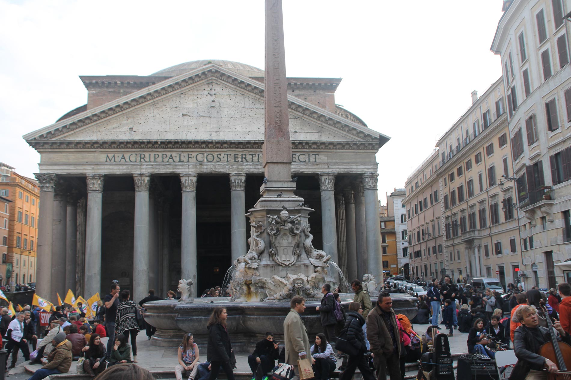 La Plaza del Panteón, con la Fontana de Giacomo della Porta y el Obelisco de Isis en primer término.