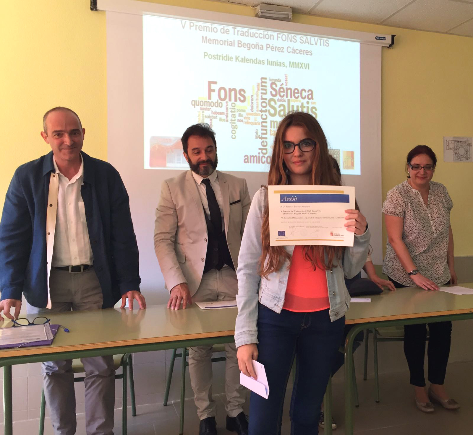 El 2 de junio de 2016 se entregaron en la Biblioteca del centro los V Premios de Traducción FONS SALVTIS (Memorial Begoña Pérez Cáceres). El objetivo de la convocatoria de estos premios es dar a conocer las grandes creaciones de los autores grecolatinos desde los propios textos.